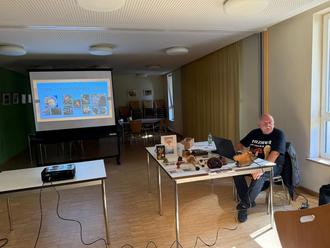 Seine PowerPoint- Präsentation hatte interessante Aspekte verschiedenster Pilze zur Ansicht. Im Körbchen hatte Herr Melcher verschiedene „Inselpilze“ mitgebracht.
