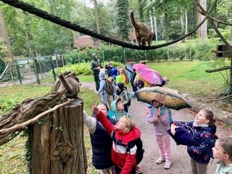 Mit dem Thema „Haus- und Heimtiere“ führte die Zooschullehrerin Frau Höhn mit weiteren Tierpflegern die Klassen durch den Tierpark. An verschiedenen Gehegen einen kurzen Stop einlegend bekamen wir interessante Informationen zu den jeweiligen Bewohnern. So konnten die Kinder beispielsweise herausfinden, was die Leibspeisen des Kaninchens sind und wie es am liebsten lebt und wohnt. In hervorragender Zusammenarbeit wurde anschließend gemeinsam der Käfig für das Nagetier zu einer richtigen „Wohlfühl-Oase“ eingerichtet. Wussten Sie, dass Wellensittiche am liebsten, um die Freude nicht zu verlieren, mit ganz vielen Artgenossen zusammenleben?
