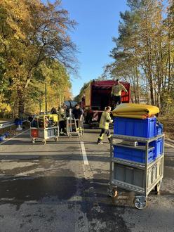 Als am 23.10.2024 um 9:02 Uhr unsere Melder gingen mit dem Meldebild Hilfeleistung Gefahrgut, war uns bewusst, dass das kein alltäglicher Einsatz wird. Ich, als stellvertretender Ortswehrführer und Einsatzleiter muss aus meiner Sicht sagen, wenn man so etwas liest, gehen einem Tausende Gedanken durch den Kopf. Nach kurzer Absprache mit dem Einsatzleiter für Gefahrgut und unserem Kreisbrandmeister, teilte ich meine 17 Kameraden ein, bei denen ich auf jeden einzelnen stolz bin. Die Besatzung vom Löschgruppenfahrzeug bespeiste die Dekontaminationsstrecke mit Wasser bis auf den Melder, der an meiner Seite blieb und der Schlauchtrupp, der die Straße zur Waldoase sperrte. Die Besatzung des Tanklöschfahrzeuges bildete eine einfache Löschbereitschaft. Der Schlauchtrupp sperrte in Zusammenarbeit mit der Bundespolizei den Grenzübergang, die Landespolizei sperrte die Straße Höhe der Feuerwehr. Ich bin allen Beteiligten Einsatzkräften, der Gemeinde, der Bürgermeisterin und dem Stellvertretenden Bürgermeister sehr dankbar für die sehr gute Zusammenarbeit.