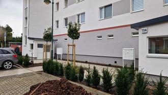 | Die Fassaden wurden saniert, da diverse Rissbildungen in den Fassaden zu Feuchtigkeitsschäden in den Wohnungen geführt haben. Weiterhin entsprach die Gestaltung nicht mehr der Modernität und dem Anspruch an neuwertige schöne und qualitativ ansprechende Gestaltung der Wohnanlagen. Für unsere Mieterinnen und Mieter hat sich nicht nur die Wohnqualität verbessert sondern das Wohnumfeld wurde deutlich aufgewertet. Die Kosten für beide Fassaden haben ca. 400.000,00 € betragen. |