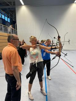 Am 9. und 10.11.2024 fand die Kreismeisterschaften im Bogenschießen bei uns in der Pommernhalle statt. In der nächsten Ausgabe werden Sie einen Bericht unserer Bogenschützen dazu lesen dürfen. Vor dem großen Turnier besuchte unsere Bürgermeisterin das Training der Bogenschützen und durfte sich bei diesem außergewöhnlichen Sport ausprobieren. Ihr Fazit: „Es hat unglaublich viel Spaß gemacht! Wir waren traurig, als wir den Bogen wieder weglegen mussten. Vor allem aber die Mitglieder haben mich begeistert. Alle sehr hilfsbereit und engagiert. Wir können sehr stolz sein, dass der Verein rein ehrenamtlich Kreismeisterschaften ausrichtet!“