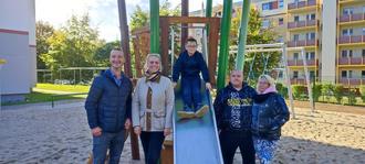 Der Spielplatz im Dünenweg in Heringsdorf konnte eingeweiht werden. Dafür hat unsere Wohnungsgesellschaft rund 100.000; Euro investiert und der Spielplatz wurde nach seiner feierlichen Eröffnung am 17.10.2025 sofort im Sturm erobert.