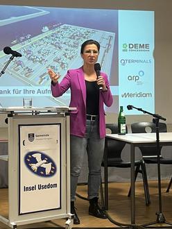 Das geplante Containerterminal in Swinemünde soll jährlich bis zu 2 Millionen Container umschlagen. Die Hauptproblematik, die aus der Versammlung hervorging, sind folgende: