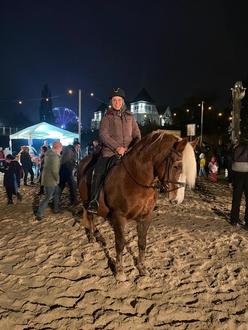 Hoch zu Pferd! Beim St. Martins Umzug der Kirche in Heringsdorf spielte die Bürgermeisterin St. Martin. Ein großer Dank gilt Fox Lady, der Stute vom Reiterhof Bickmann, die den Umzug bravourös und ruhig gemeistert hat.