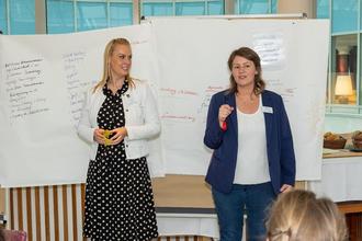 Frau Friedrich, die stv. Ratsvorsitzende und Gleichstellungsbeauftragte der Gemeinde Ostseebad Heringsdorf, stellt die Ergebnisse beim Austausch des ersten Netzwerktreffens „MeerWege – Frauen gestalten Zukunft" vor.