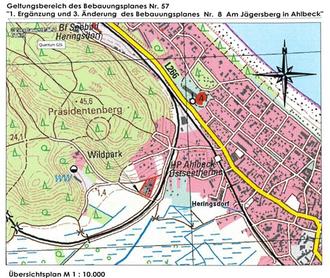 Der Geltungsbereich des Bebauungsplanes Nr. 57 „1. Ergänzung und 3. Änderung des Bebauungsplanes Nr. 8 Am Jägersberg in Ahlbeck" der Gemeinde Ostseebad Heringsdorf umfasst folgenden Grundstücke:
