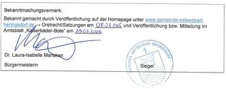 Auf der Grundlage des § 5 der Kommunalverfassung für das Land Mecklenburg-Vorpommern (KV M-V) in der Fassung der Bekanntmachung vom 13. Juli 2011 (GVOBl. M-V S. 777), Zuletzt geändert durch Art. 1 Doppik-Erleichterungsgesetzes vom 23.7.2019 (GVOBl. M-V S. 467) und der §§ 1 bis 3 und 17 des Kommunalabgabengesetzes (KAG M-V) in der Fassung der Bekanntmachung vom 12. April 2005 (GVOBl. M-V S. 146), zuletzt geändert durch Art. 1 zweiten Gesetzes zur Änderung des Kommunalabgabengesetzes vom 26.5.2023 (GVOBl. M-V S. 650) wird nach Beschlussfassung der Gemeindevertretung der Gemeinde Ostseebad Heringsdorf vom 19.12.2024 folgende Satzung erlassen: