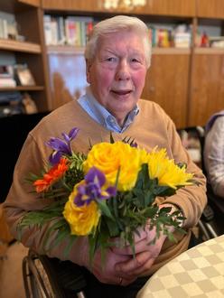 Horst Rossow freute sich zu seinem 90. Geburtstag über die Gratulation und einen Blumenstrauß der Bürgermeisterin Dr. Laura Isabelle Marisken.