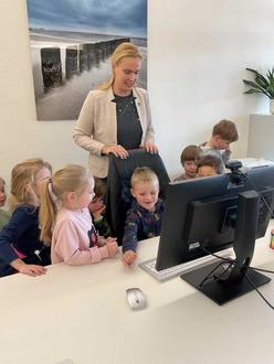 Ganz im Sinne der Partizipation und in Begleitung der pädagogischen Fachkräfte, haben die Kinder sich diese Thematik zu eigen gemacht und plötzlich war sie da – die Idee unsere Bürgermeisterin zu besuchen und auf kindliche Fragen Antworten zu finden. In Sitzkreis-Atmosphäre wurde deutlich, dass nicht nur 2 Kinder Interesse an dem Leben eines Bürgermeisters/ einer Bürgermeisterin zeigten. Alle Fragen und Aussagen der Kinder wurden gesammelt. Die pädagogischen Fachkräfte nahmen Kontakt auf und stießen seitens der Gemeinde auf Begeisterung und viel Engagement. E-Mail-Kontakte und Telefongespräche im Vorfeld sicherten eine gut durchdachte Organisation und einen reibungslosen Ablauf. Der zuckerfreie Tee und die Glutenfreien Kekse schmeckten nicht nur den Kindern mit Allergien. Dieses Angebot entsprach auch dem VitalKita-Konzept, welches nicht nur, „Medien-Bildung“, sondern auch „gesunde Ernährung“ verspricht. Frau Dr. Marisken empfing die neugierige Bande im Sitzungssaal der Gemeinde mit der gedeckter Tee-Tafel. Die Bürgermeisterin beantwortete den Kindern Fragen wie z.B. „Läutest Du auch um 12.00h die Glocke?“ “Bekommen wir einen Spielplatz mit Tunnelrutsche!“ oder “Was machst Du so den ganzen Tag?“, “Hast Du auch ein Huhn, wie in PawPatrol?“ Frau Dr. Marisken nahm das Interesse der Sprösslinge ernst und gab Rede und Antwort. Die Kinder lernten u.a., dass jede eingegangene Post mit einem Stempel in XXL-Format abgestempelt werden muss. Diese Aufgabe durfte an diesem Tag jedes Kind einmal übernehmen. Viel Neues erfuhren die Kinder bei einem Rundgang über Flure und Büroräume. Mitarbeiter erklärten kindgerecht ihren Tätigkeitsbereich. Das Highlight hingegen versteckte sich im Büro der Bürgermeisterin. “Ein Chef-Stuhl mit Tastatur!“ (so die Aussage eines 4-jährigen). Hier durfte jeder der wollte einmal auf dem Schreibtischstuhl der Bürgermeisterin Platz nehmen und nach Herzenslust auf der Tastatur tippen. Eine Abschluss-Sitzung im Sitzungssaal hielt zuletzt noch einige Überraschungen bereit. Der kleine Tyler (5) bedankte sich im Namen aller Kinder bei Frau Dr. Marisken für die Einladung und überreichte eine Flasche mit frischem Smoothie. Er selbst hatte am Morgen mit der Hauswirtschaftskraft der Kindertagesstätte diesen grasgrünen Smoothie zubereitet. Die Jungen und Mädchen der Tanz-Arbeitsgemeinschaft zeigten sich mutig und performten ein Bewegungslied. Bevor sich alle noch einmal für ein Foto vor dem Rathaus versammelten hatten alle Kinder einen Freizeit-Sportbeutel von Frau Dr. Marisken und ihrem Team bekommen. Ein Tischspiel versteckte sich zur Freude der Kinder im Inneren. Nach einer kleinen Foto-Session verabschiedeten sich Kinder und Fachkräfte mit einem Reim und vielen wirkenden Händen. Mit Freude in den Augen und jede Menge Wissen im Gepäck kehrten die Kinder der Ahlbecker VitalKita wieder in ihre Einrichtung zurück.