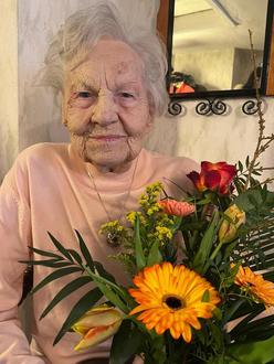 Was für ein stolzes Alter. Frau Vielhaber freute sich anlässlich ihres 100. Geburtstages ganz besonders über die Blumen und den Besuch der Bürgermeisterin.