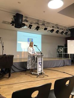 Die Bürgermeisterin der Gemeinde Ostseebad Heringsdorf, Frau Dr. Laura Isabelle Marisken, eröffnete die Veranstaltung und gab den Anwesenden einen Überblick über die Geschichte des Baudenkmales HdE sowie die Schritte, die zur derzeit vorliegenden frühen Neuplanung geführt haben. Neben historischen Fotos und Berichten von Zeitzeugen wurden die Aktivitäten der Arbeitsgruppe HdE sowie der Ablauf des kürzlich durchgeführten wettbewerblichen Dialogverfahrens durch sie vorgestellt.