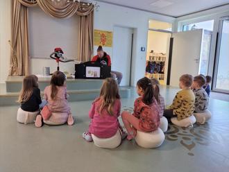 Am Montag gab es die Einführung in das Thema durch eine Kamishibai-Geschichte, in der „Schrotti“ das erste Mal auftaucht und einem Geschwisterpärchen erklärt, warum es wichtig ist, Müll nicht einfach liegen zu lassen oder in die Natur zu werfen.