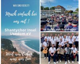 Wir, der Shantychor der Insel Usedom, haben im Jahr 2024 unser 15-jähriges Gründungsjubiläum feiern können. Der Altersdurchschnitt ist seit der Gründung naturgemäß stark angewachsen. Der „Zahn der Zeit“ ist an manchem Shantysänger leider nicht vorbei gegangen. So ist es nun aber an der Zeit sich mit „jungen, dynamischen Musikern und Sängern“ oder die sich dafür halten, zu verstärken. Wer lernt oder spielt zum Beispiel gern eine Bassgitarre und sucht noch nach einer Bestätigung um das Gelernte zu vertiefen? Oder wer verspürt Lust mit seinem Akkordeon die Sänger des Shantychores zu unterstützen? Auch Schüler/ Absolventen der Musikschule in Wolgast sind mit ihren Instrumenten bei uns gern gesehen.