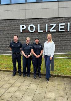 Das Polizeirevier Heringsdorf hat mit Frau Gransow eine neue Revierleiterin. V.l.n.r.: Polizeidirektor Tino Peisker - Chef der Anklamer Polizeiinspektion, Polizeihauptkommissarin Denise Lemke - Stellvertretende Revierleiterin Heringsdorf, Polizeihauptkommissarin Ina Gransow – neue Leiterin des Polizeireviers Heringsdorf, Dr. Laura Isabelle Marisken – Bürgermeisterin der Gemeinde Ostseebad Heringsdorf.