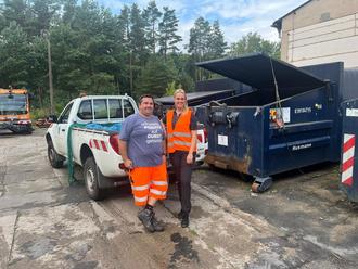 Ist der Müll eingesammelt, wird er zum Bauhof gebracht und landet dort in der großen Müllpresse. Und auch diese muss in der Saison wöchentlich durch den Entsorgungsbetrieb des Landkreises geleert werden.