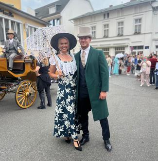 In diesem Jahr feierten die Kaisertage ihr 25 jähriges Jubiläum! Unsere Bürgermeisterin, Frau Dr. Laura Isabelle Marisken, wartet gemeinsam mit Ihrem Partner, Stefan Meister, auf das Kaiserpaar beim großen Festumzug in Heringsdorf.