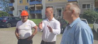 WOG-Geschäftsführer Mike Speck (Mitte) auf der Baustelle mit Maurermeister Heiko Wieck (links) und HKF-Geschäftsführer Thorsten Fichtler.