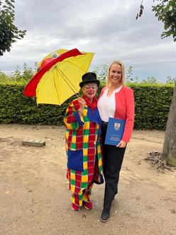 Bürgermeisterin Dr. Laura Isabelle Marisken zusammen mit Mariette, der Tochter von Clown Lolo