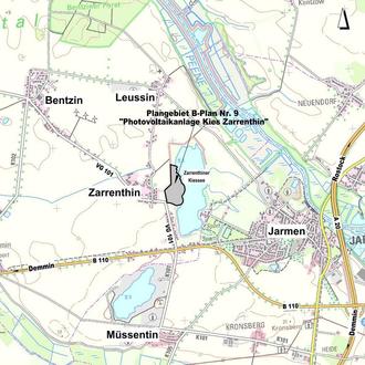 Die Gemeindevertretung Bentzin hat in ihrer öffentlichen Sitzung am 10.11.2020 für den in anliegender Übersichtskarte gekennzeichneten Geltungsbereich die Aufstellung des Bebauungsplans Nr. 9 „Photovoltaikanlage Kies Zarrenthin“ beschlossen.