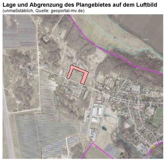 | Die 1. Änderung des Bebauungsplans Nr. 7 „Solarpark Tutow II, Auf dem Flugplatz“ hat eine Größe von 0,4 ha. Der Planbereich liegt südlich der der gemeindlichen Straße „Pommernring“. Er umfasst die Flurstücke 5/32 (teilw.), 5/49 (teilw.) sowie 5/11 (teilw.) der Flur 1 in der Gemarkung Tutow. Siehe dazu Anlage Planzeichnung | |