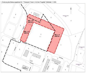 | 1. | Änderung des Bebauungsplans Nr. 7 „Solarpark Tutow II, Auf dem Flugplatz“ |