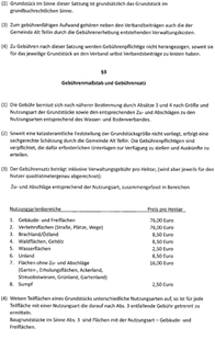(3) Der Gebührensatz beträgt inklusive Verwaltungsgebühr pro Hektar, (wird aber jeweils für den Nutzer quadratmetergenau abgerechnet):