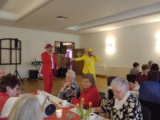 Im Anschluss an die Kaffeerunde unterhielten die beiden Schlagerbarden vom Duo Schöller die Damen dann mit einem Strauß bunter Melodien. Und wen sie da alles im Gepäck mitgebracht hatten; angefangen bei Karel Gott über Roland Kaiser und natürlich durfte auch Udo Jürgens nicht fehlen. Nach dem alle so richtig in Stimmung waren, konnte dann auch getanzt werden. Viele allerdings nutzten auch die Gelegenheit, alte Bekanntschaften neu zu beleben und hielten einen kleinen Plausch, hatten sich doch manche seit der Coronapandemie nicht mehr gesehen.