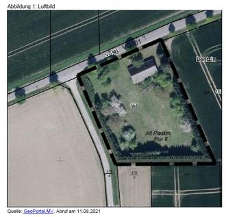 Der räumliche Geltungsbereich des Bebauungsplans umfasst auf einer Fläche von ca. 0,4 ha das Flurstück 161 der Flur 6 in der Gemarkung Plestlin. Das Plangebiet befindet sich im Außenbereich westlich des Ortsteils Alt Plestlin in der Gemeinde Bentzin. Es wird im Norden von der Kreisstraße VG 101 begrenzt und im Westen durch eine Gemeindestraße, im Osten und Süden befinden sich Ackerflächen.