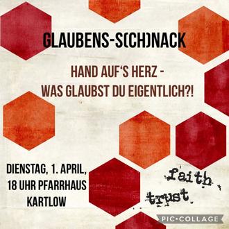 | 18 Uhr | Pfarrhaus Glaubenss(ch)nack |