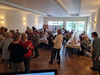 Im Anschluss begrüßte dann auch Bürgermeister André Werner alle mit einem historischen Zitat, stieß mit den Frauen an und überreichte allen fleißigen Helfern symbolisch eine Rose, die sich am Ende des Abends jede der anwesenden Frauen mit nach Hause nehmen durfte. Er ließ es sich anschließend dann auch nicht nehmen, den Frauen ihren Kaffee einzuschenken. Und da hatte er kräftig zu tun, waren doch eine Vielzahl an Frauen der Einladung gefolgt und der Saal der Gaststätte gut gefüllt.