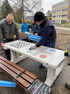 So wurde Müll gesammelt, Anlagen von altem Laub und Gestrüpp befreit. Aber auch neue Sträucher konnten auf der neugestalteten Außenanlage vor dem Gemeindezentrum Weiße Schule gepflanzt und eine robuste Bank mit einem Spieletisch aufgestellt werden. Damit gewinnt das Gelände am Festplatz und am Gemeindezentrum an Attraktivität und lädt - wenn alles grünt und blüht - zum Verweilen ein. Der Kulturausschuss dankt allen freiwilligen Helferinnen und Helfern.