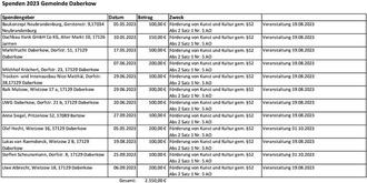 Die Gemeindevertretung Daberkow beschließt über die Entgegennahme von Spenden gemäß § 44 Kommunalverfassung MV für das Haushaltsjahr 2023.