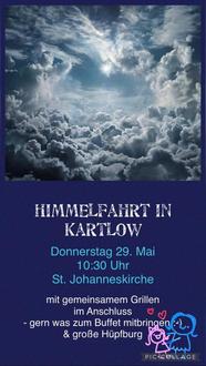 Dieses Jahr feiern wir unser regionales Himmelfahrts-Fest in Kartlow. Nach einem schönen Gottesdienst ab 10:30 Uhr wollen wir wieder Grillen und Beisammen sein und laden alle ein, Salate und andere Leckereien für’s Buffet mitzubringen.