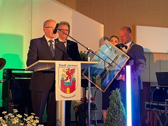 Im Rahmen unseres Jahresempfanges besuchte uns eine Delegation aus unserer polnischen Partnerstadt in Susz. Nach der Begrüßung am Donnerstagabend trafen wir uns erneut auf der Festveranstaltung am Freitagabend in Jarmen. Hier wurde mir u.a. ein durch den Stadtpräsidenten, Stanislaw Blonkowski, selbst gemaltes Bild übergeben.