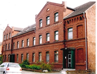 Gegenüber kommen wir in den „Grünen Weg“. Vor dem Krieg befand sich hier die Maschinenfabrik.