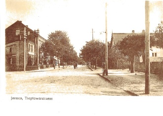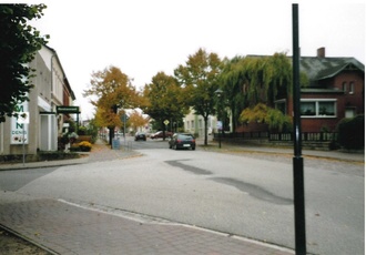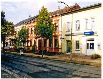 Eine Häuserreihe mit Wohn- und Geschäftshäusern schließt sich auf der linken Seite an, z.B. die „Zauberflöte“, eine Gaststätte, bewirtschaftet von dem Musikdirektor Kruse. Dem schließt sich das Haus mit der Nr. 25 an, in dem 5 Geschäfte florierten, zu finden hier ein sogenanntes Arbeitsamt, ein Fleischer, Sattler Schindler, Maler Wüstenberg und der Friseur Sterling. In der Nr.27 wohnte der Kolonialwarenhändler Dochow.