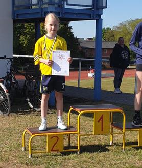 Erfolgreichster Sportler unserer Schule wurde Lennox Stöwe AK 13 mit drei Siegen ( 75m in 10,1s; Weitsprung mit 4,38m; Kugel 3kg mit 9,05m). Eine Silbermedaille gewann Milena Olsowski AK12w (Ballweitwurf 30,70m). Die beiden Bronzemedaillen erkämpften sich Lucie Wagner AK14w (Kugelstoßen 3kg 7,58m) und Finja Müller AK11w (800m). Einen 4. Platz erzielten Hanna Wilke AK14w im Kugelstoßen (7,44m) und Sophie K. Rabehl AK15w im Weitsprung (4,02m) und im Hochsprung (1,25m).