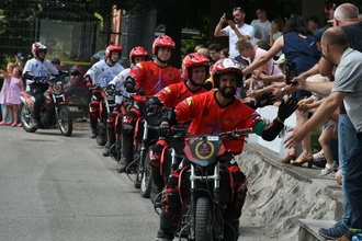 Eine polnische Delegation weilte schon des Öfteren bei einem Motoballspiel in Jarmen und war auch Gast zu unserem 50-jährigen Bestehen im letzten Jahr. Dabei wurde der Wille geäußert, dass wir unbedingt den Motoballsport auch in Susz vorführen sollen. Schließlich gilt die Partnerstadt als sehr sportbegeistert. Die polnischen Landsleute sind allgemein sehr motorsportaffin, besonders der Speedwaysport hat in Polen viele tausende Anhänger. So folgten wir der Einladung und waren gespannt ob überhaupt am Samstagmittag um 12 Uhr Zuschauer kommen würden, um die Vorführung unserer Sportart zu verfolgen. Als Spielfläche diente der Vorplatz einer Schule, der extra hergerichtet wurde. Um es vorwegzunehmen, es kamen an die 200 Zuschauer, die teilweise sehr begeistert unseren Protagonisten aus dem Jugend- und Männerteam zujubelten. Besondere Begeisterung lösten die „Taxifahrten“ mit den Kindern und auch einigen Erwachsenen aus.