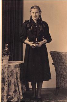 In unserer Jahrgangsstufe gab es eine Mädchen- und eine Jungenklasse, aber auch eine gemischte Klasse. Die Klassen hatten die gleiche Anzahl von Schülern. Wir absolvierten 8 Schuljahre. In der achten Klassenstufe wurden wir auf die Konfirmation vorbereitet. Die Schüler von der 1. bis zur 4. Klasse besuchten sonntags den Kindergottesdienst. Wöchentlich fand die Christenlehre im Gemeindehaus statt, die wir besuchen mussten. In der 8. Klasse hieß es dann lernen, um konfirmiert werden zu können. Wir lernten die 10 Gebote auswendig und noch einige Texte und Wissenswertes aus der Bibel. Am Tag der Prüfung, ca. eine Woche vor der eigentlichen Konfirmation, gingen wir schick gekleidet zur Kirche. Die Prüfung bestanden alle Vorkonfirmanden und so konnte eine Woche darauf die feierliche Konfirmation am 25.03.56, dem Palmsonntag, stattfinden. Eigens für diesen Tag bekamen wir neue Anziehsachen. Meine Mutter, die auch Schneiderin war, nähte mir ein wunderschönes Kleid. Es war aus schwarzem Ripstaft und an den Schultern war es mit Samt verziert.