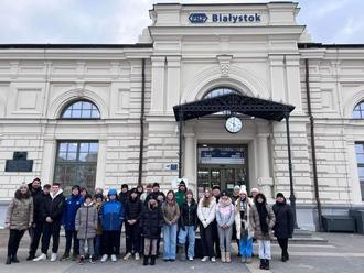 Vom 25.11.23 bis zum 02.12.23 waren unsere SchülerInnen mit Herrn Niemann und Frau Schellner unterwegs in Białystok, in Ostpolen, um unsere Partnerschule zu besuchen. Eine solche Freundschaft, wie sie zwischen beiden Schulen seit 2005 besteht, braucht Pflege und Engagement und wird letztendlich durch Schüler, Lehrer, Eltern und viele andere Unterstützer umgesetzt. Leider gab es in den letzten vier Jahren nicht die Möglichkeit für einen Schüleraustausch, trotzdem hielten wir Kontakt per Mail oder wir schickten uns gegenseitig die Päckchen. Das Motto der diesjährigen Begegnung lautete „Dialog zwischen den Nachbarn“.