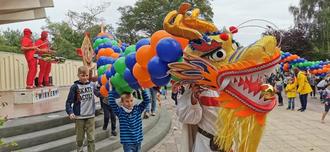 Drachenstarke Erlebnisse warteten weiterhin in der mittelalterlichen Drachenburg am Strand oder beim Erklimmen und Rutschen auf dem XXL-Drachen auf dem Strandvorplatz. Der kuschlige Drachen Drakulina und weitere Drachen-Walking-Acts sorgten für passende Erinnerungsfotos. Der Lampion-Umzug mit Karlchen am Strand, die Minidisco und die
