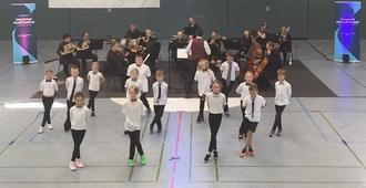 Zusammen mit der Choreografin Angelika Honig studierte die Klasse 3a den Tanz „Karussell“ ein, während die Klasse 3b eine Polka einübte. In nur vier Übungseinheiten à 70 Minuten erlernten die Kinder ihren Tanz und fuhren schließlich am 27.9.2024 aufgeregt und mit viel Vorfreude nach Ahlbeck, wo ihr großer Auftritt in der Pommernhalle stattfand.