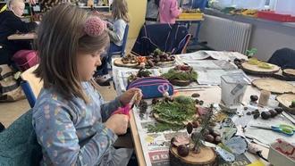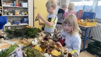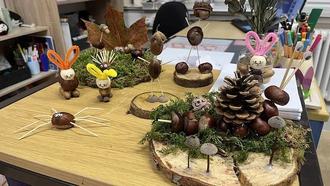 Kurz vor den Herbstferien 2024 fand in der Klasse 1a ein besonderes Bastelprojekt statt. Gemeinsam mit einigen Mamas und der Horterzieherin Danuta gestalteten die Kinder eine herbstliche Landschaft aus Naturmaterialien. Blätter, Kastanien, Eicheln und kleine Zweige wurden kreativ verwendet, um eine wunderschöne Herbstszene zu erschaffen.