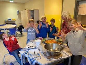 Die Mitglieder des Seniorenbeirates unterstützten unsere Klassen tatkräftig beim Schnippeln und Zubereiten leckerer Rezepte.