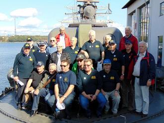 Peenemünder Kameraden auf der HMS „Västervik“ im Hafen des Marinemuseums Karlskrona 2015