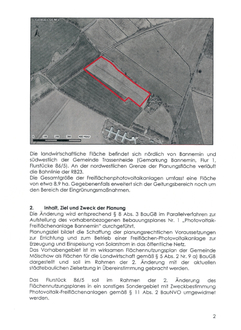 Die Zielsetzungen des vorhabenbezogenen Bebauungsplanes Nr. 1 befinden sich noch nicht in Übereinstimmung mit den gesamtgemeindlichen Planungen, so dass im Parallelverfahren eine 2. Änderung des Flächennutzungsplanes erfolgt.
