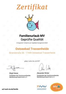 Seit 2005 tragen wir stolz das Qualitätssiegel „Familienurlaub MV – Geprüfte Qualität“ des Tourismusverbandes M-V. Für uns ist es eine Herzensangelegenheit, Familien einen Ort zu bieten, an dem sie dem Alltag entfliehen und unvergessliche Momente miteinander erleben können.