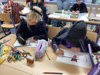Viele gruselig verkleidete Hexen, Geister und Fußball-Zombies wandelten an diesem Tag durch die Schulräume. Gemeinsam lösten sie während der Unterrichtszeit Halloween-Rätsel, schrieben Wörter rund um das ursprünglich irische Fest und knobelten Halloween-Matheaufgaben.