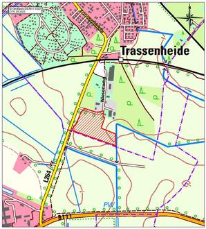 | Zur Umsetzung des Planungsziels hat die Gemeindevertretung des Ostseebades Trassenheide am 16.08.2022 den Beschluss zur Aufstellung des Bebauungsplanes Nr. 18 „Erweiterung des Gewerbegebietes am Bahnhof“ gefasst. | |
