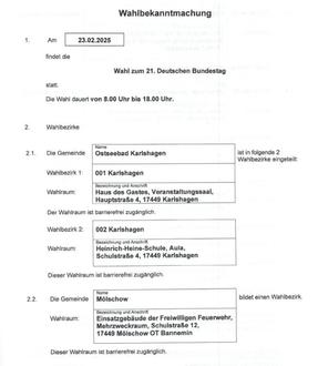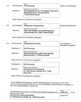 | Die Wähler haben die Wahlbenachrichtigung und ihren Personalausweis oder Reisepass zur Wahl mitzubringen. | |